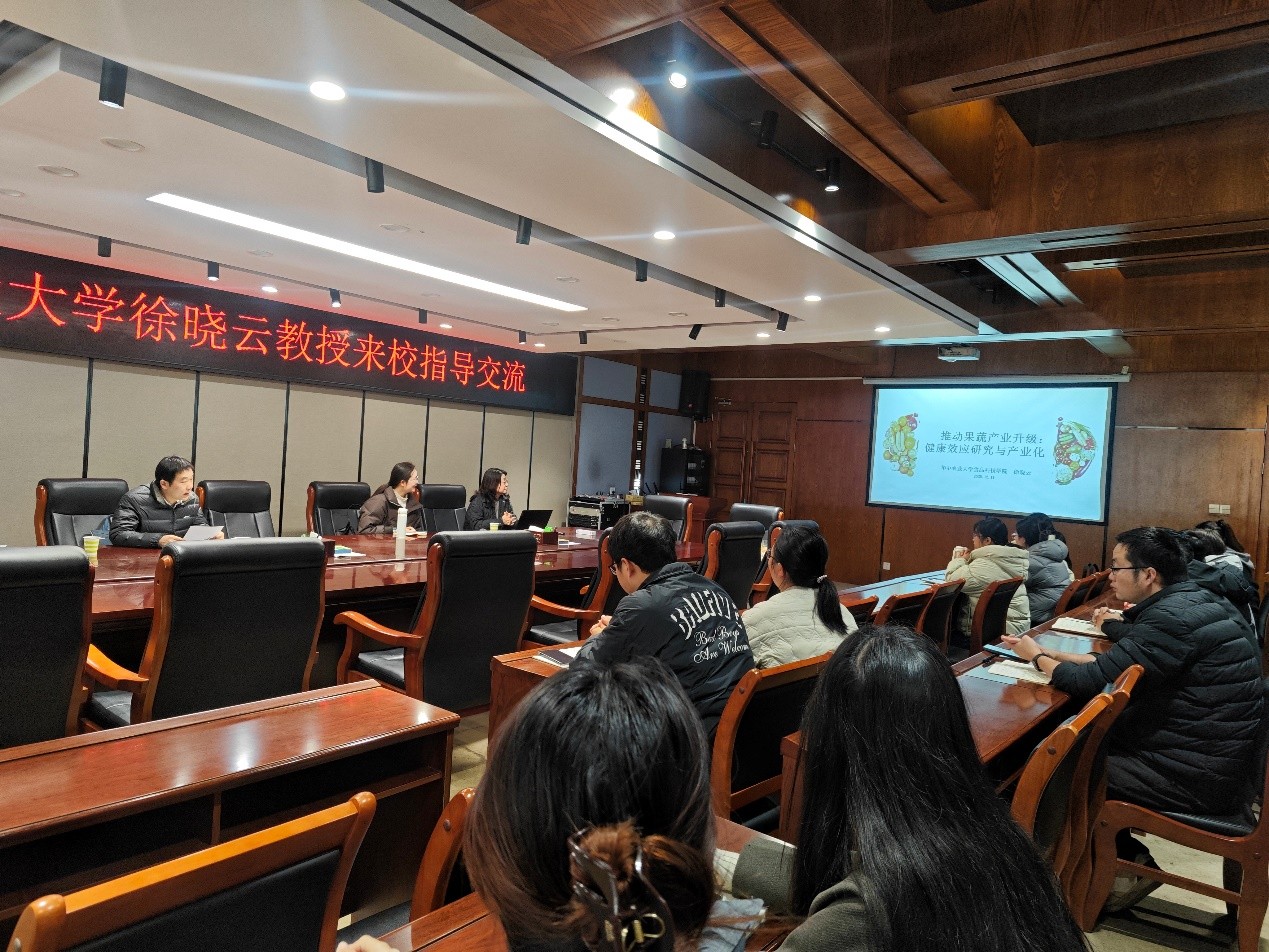 12月11日上午,华中农业大学徐晓云教授受邀在逸夫楼321会议室,为bw必威西汉姆联官方网站师生作了题为“推动果蔬产业升级:健康效应研究与高值化技术开发”的专题学术讲座。公司经理周棋赢教授主持讲座,50余名师生代表现场聆听。